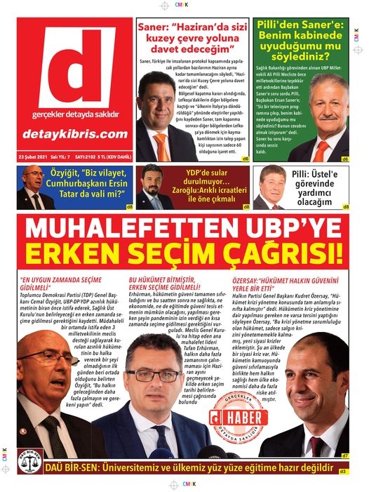 KKTC'de Gazeteler Bugün Ne Manşet Attı? (23 Şubat 2021) galerisi resim 1