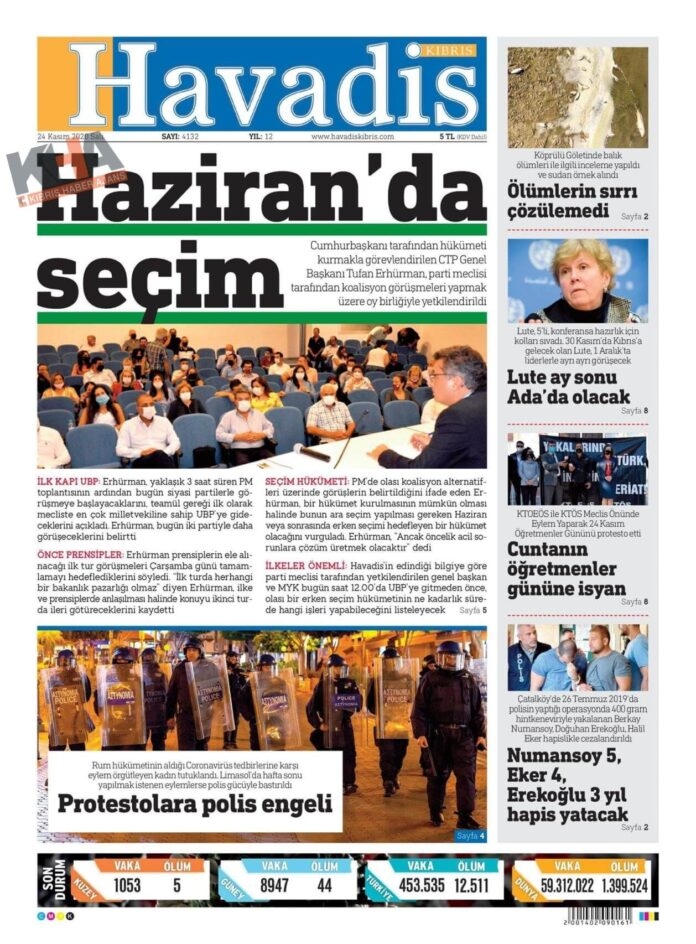 KKTC'de Gazeteler Bugün Ne Manşet Attı? (24 Kasım 2020 Salı)