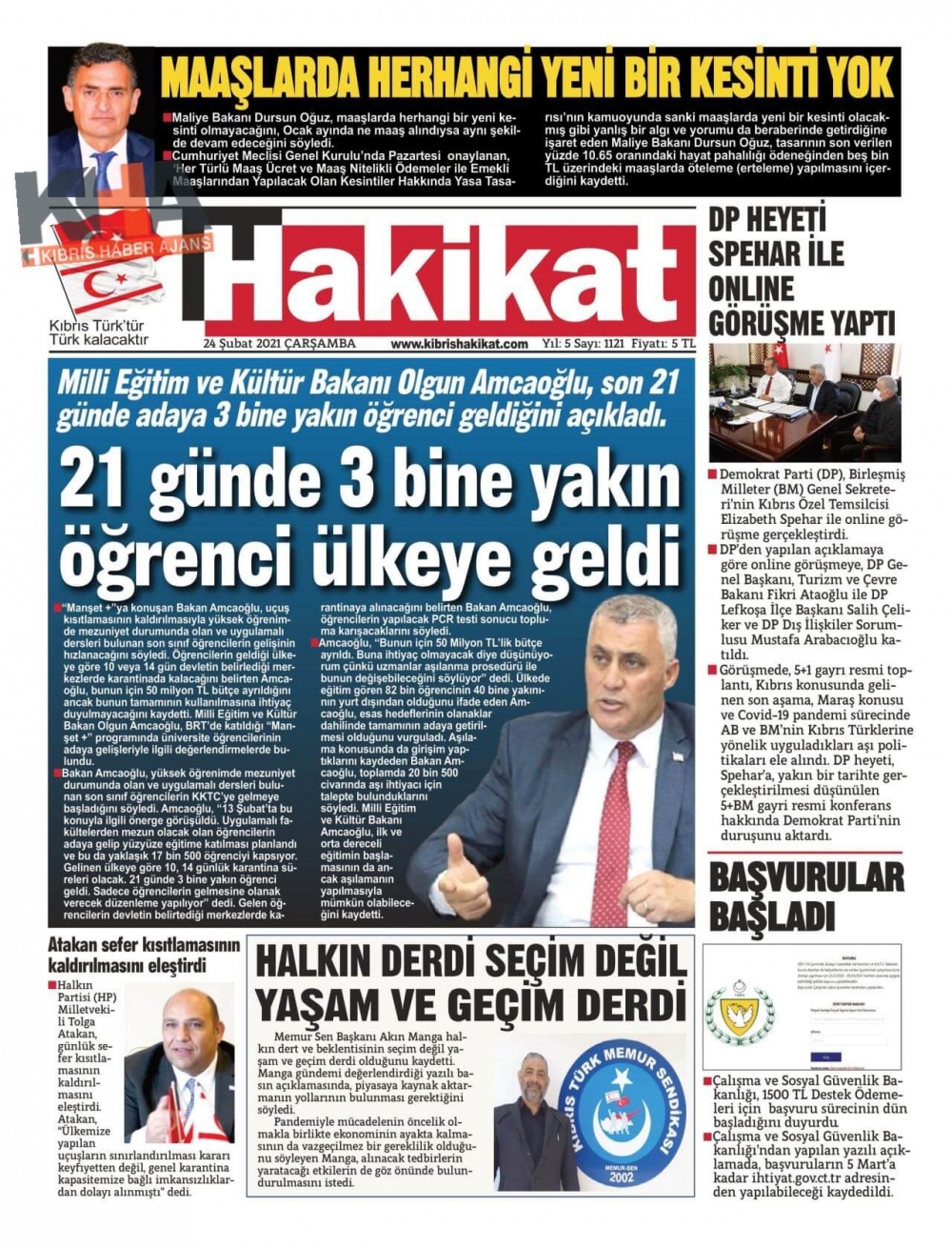KKTC'de Gazeteler Bugün Ne Manşet Attı? (24 Şubat 2021)