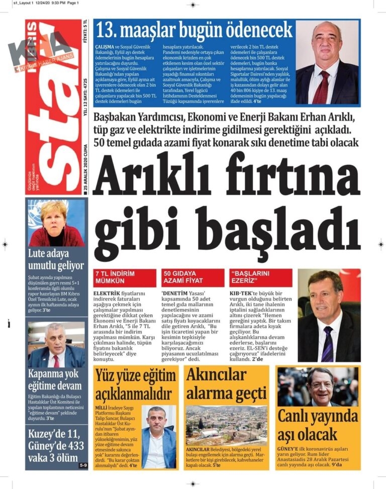 KKTC'de Gazeteler Bugün Ne Manşet Attı? (25 Aralık 2020 Cuma)