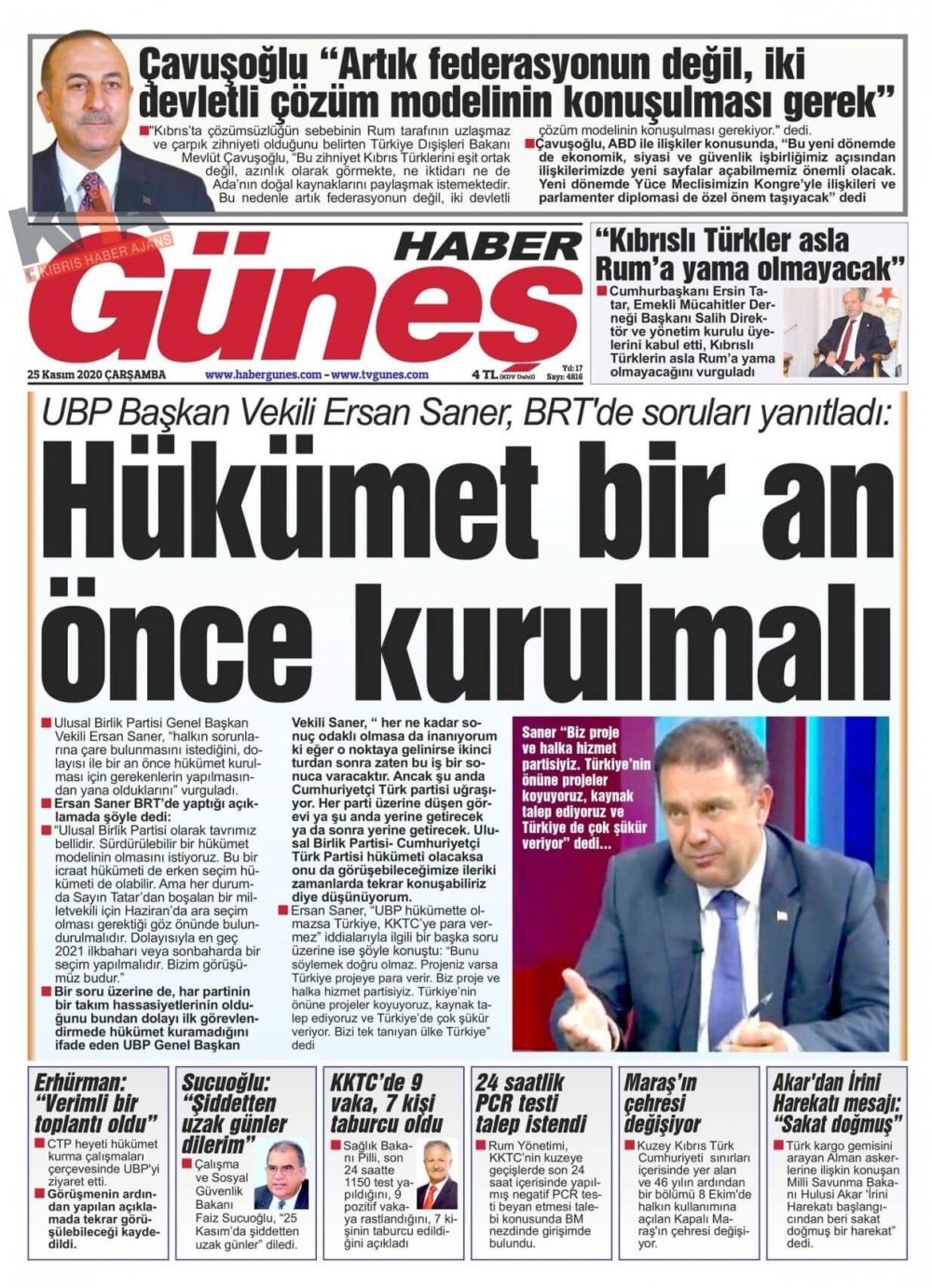 KKTC'de Gazeteler Bugün Ne Manşet Attı? (25 Kasım 2020 Çarşamba)