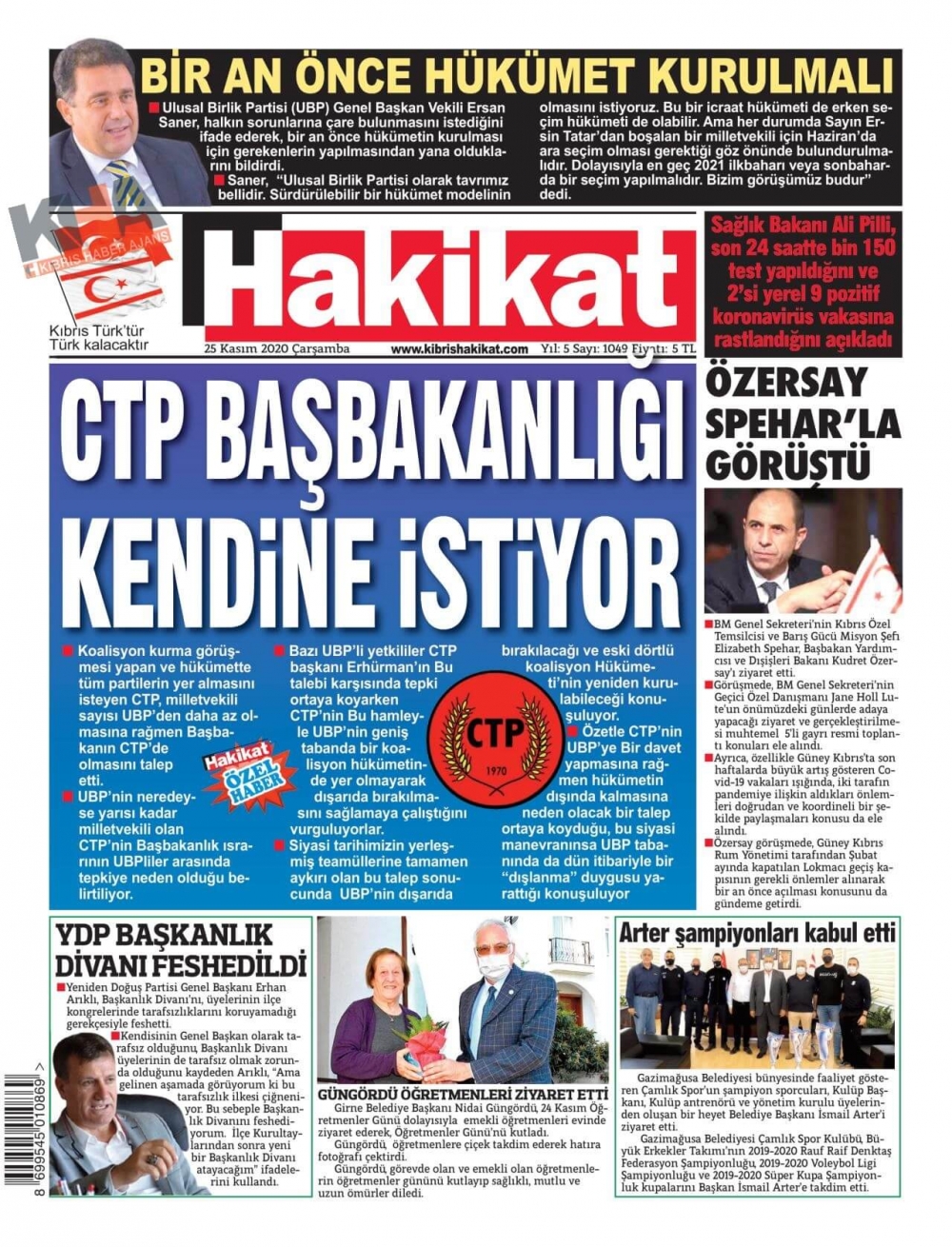 KKTC'de Gazeteler Bugün Ne Manşet Attı? (25 Kasım 2020 Çarşamba)