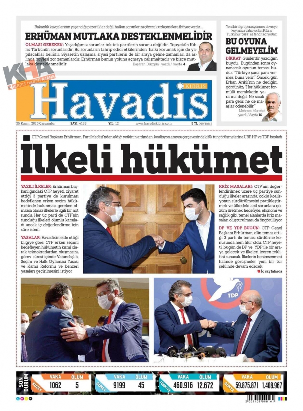 KKTC'de Gazeteler Bugün Ne Manşet Attı? (25 Kasım 2020 Çarşamba)