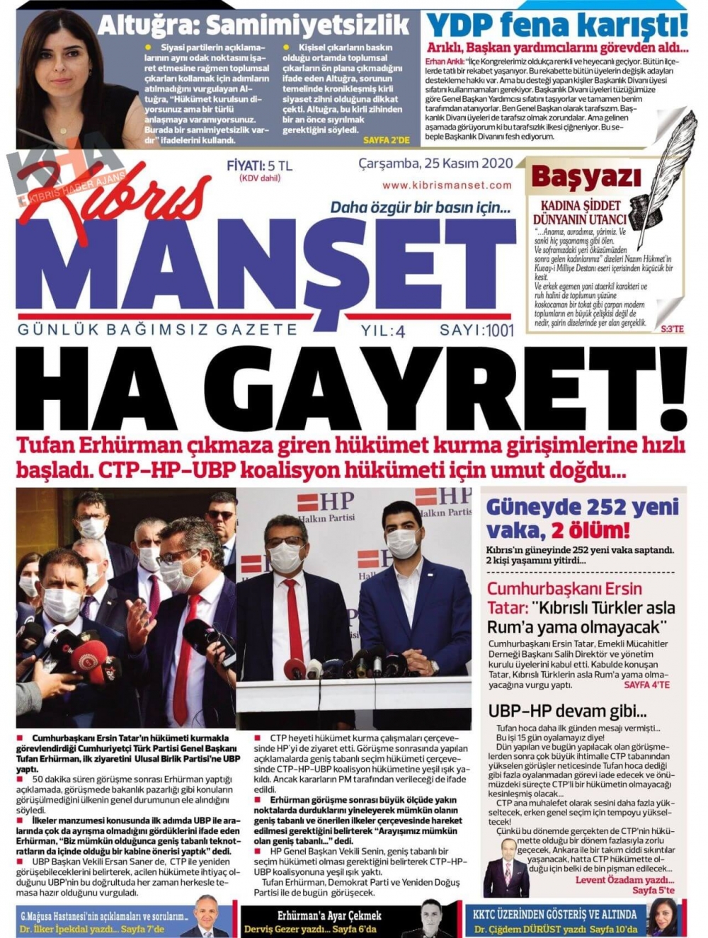 KKTC'de Gazeteler Bugün Ne Manşet Attı? (25 Kasım 2020 Çarşamba)