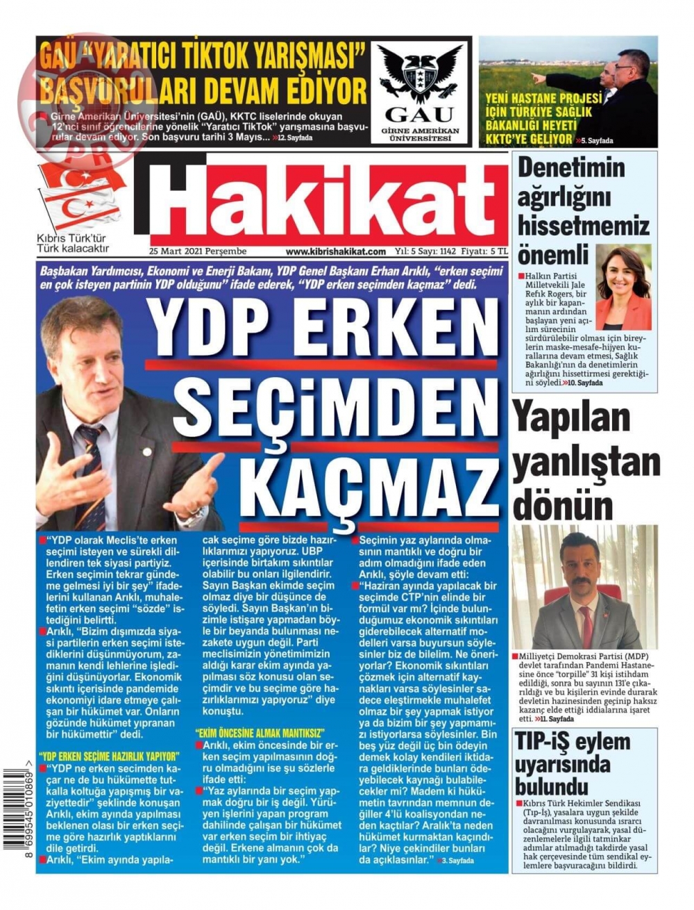 KKTC'de Gazeteler Bugün Ne Manşet Attı? (25 Mart 2021)