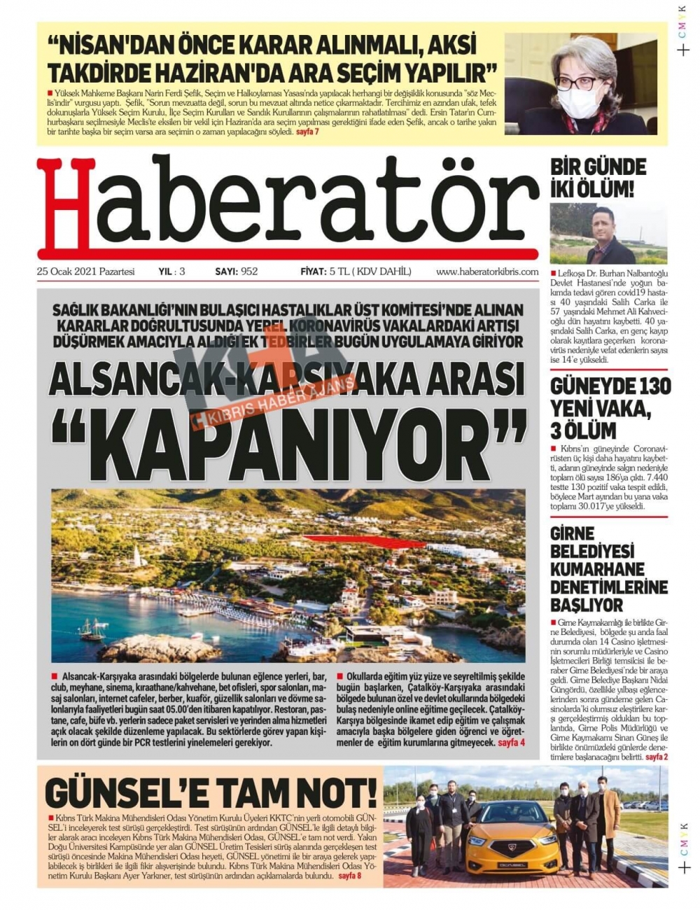 KKTC'de Gazeteler Bugün Ne Manşet Attı? (25 Ocak 2021)