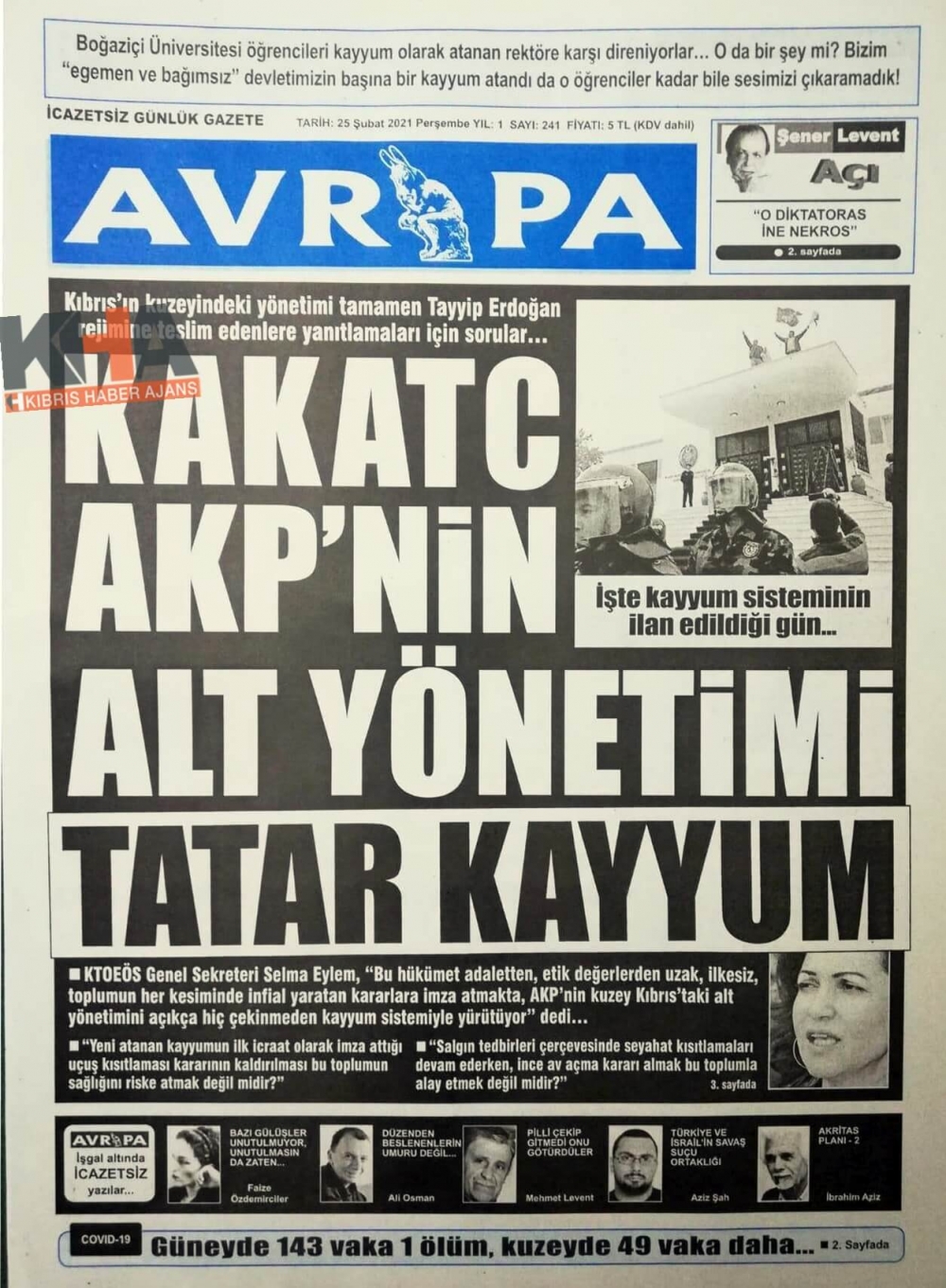 KKTC'de Gazeteler Bugün Ne Manşet Attı? (25 Şubat 2021)