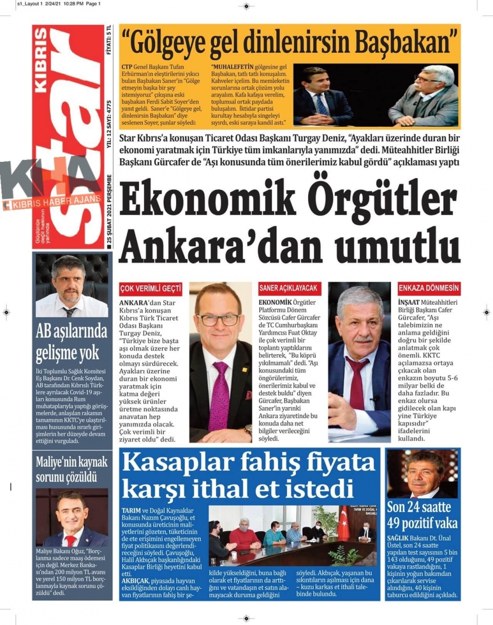 KKTC'de Gazeteler Bugün Ne Manşet Attı? (25 Şubat 2021)