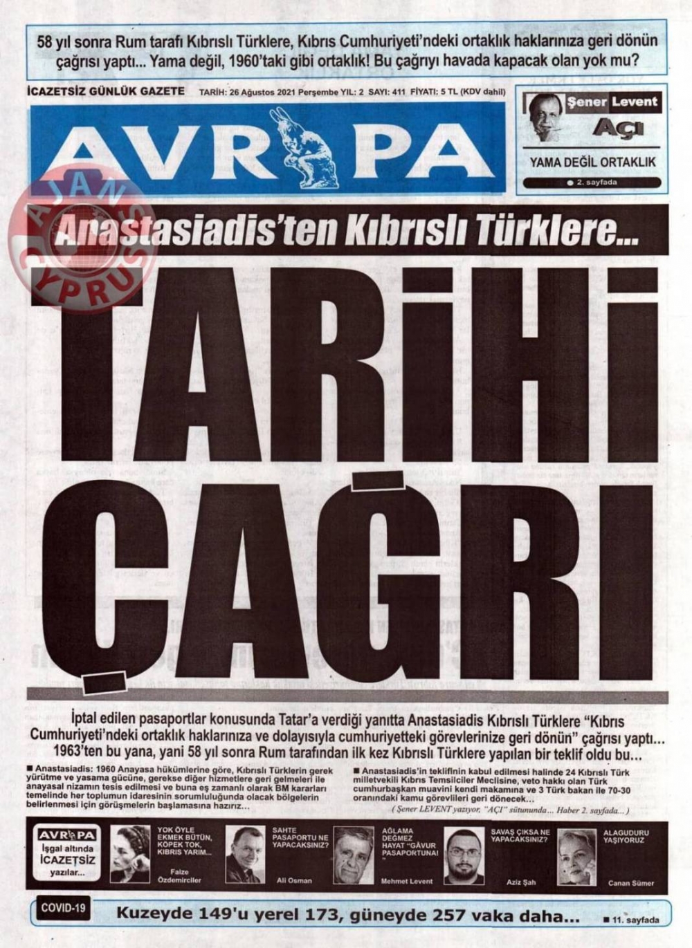 KKTC'de Gazeteler Bugün Ne Manşet Attı? (26 Ağustos 2021)