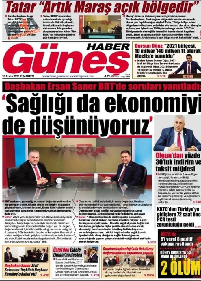 KKTC'de Gazeteler Bugün Ne Manşet Attı? ( 26 Aralık 2020 Cumartesi )
