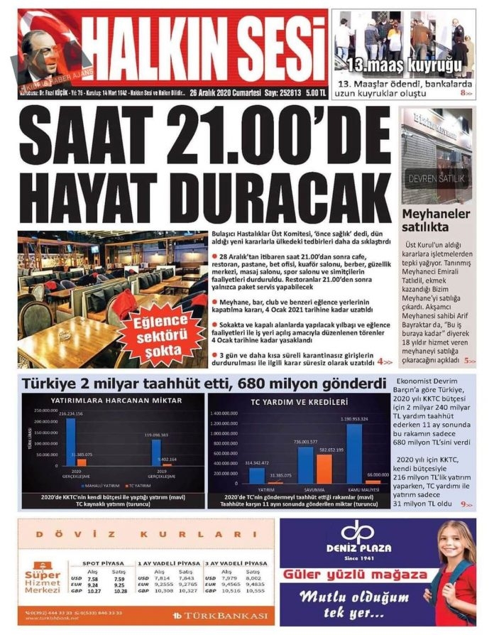 KKTC'de Gazeteler Bugün Ne Manşet Attı? ( 26 Aralık 2020 Cumartesi )
