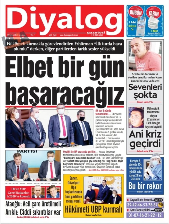 KKTC'de Gazeteler Bugün Ne Manşet Attı? (26 Kasım 2020 Perşembe)
