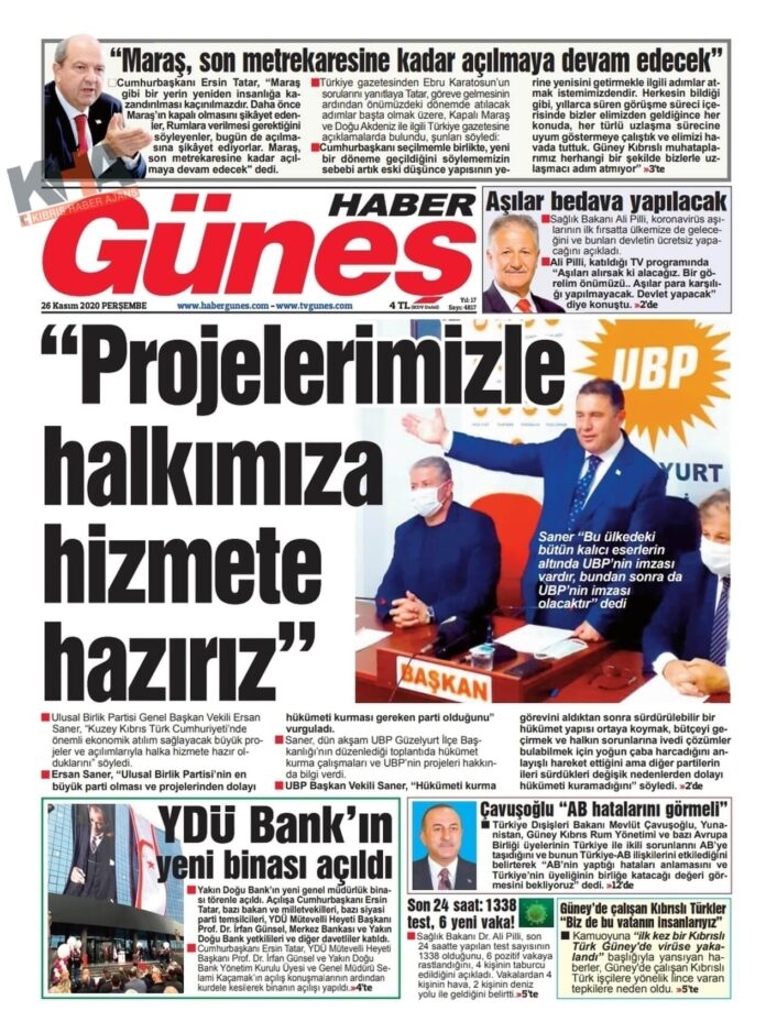 KKTC'de Gazeteler Bugün Ne Manşet Attı? (26 Kasım 2020 Perşembe)