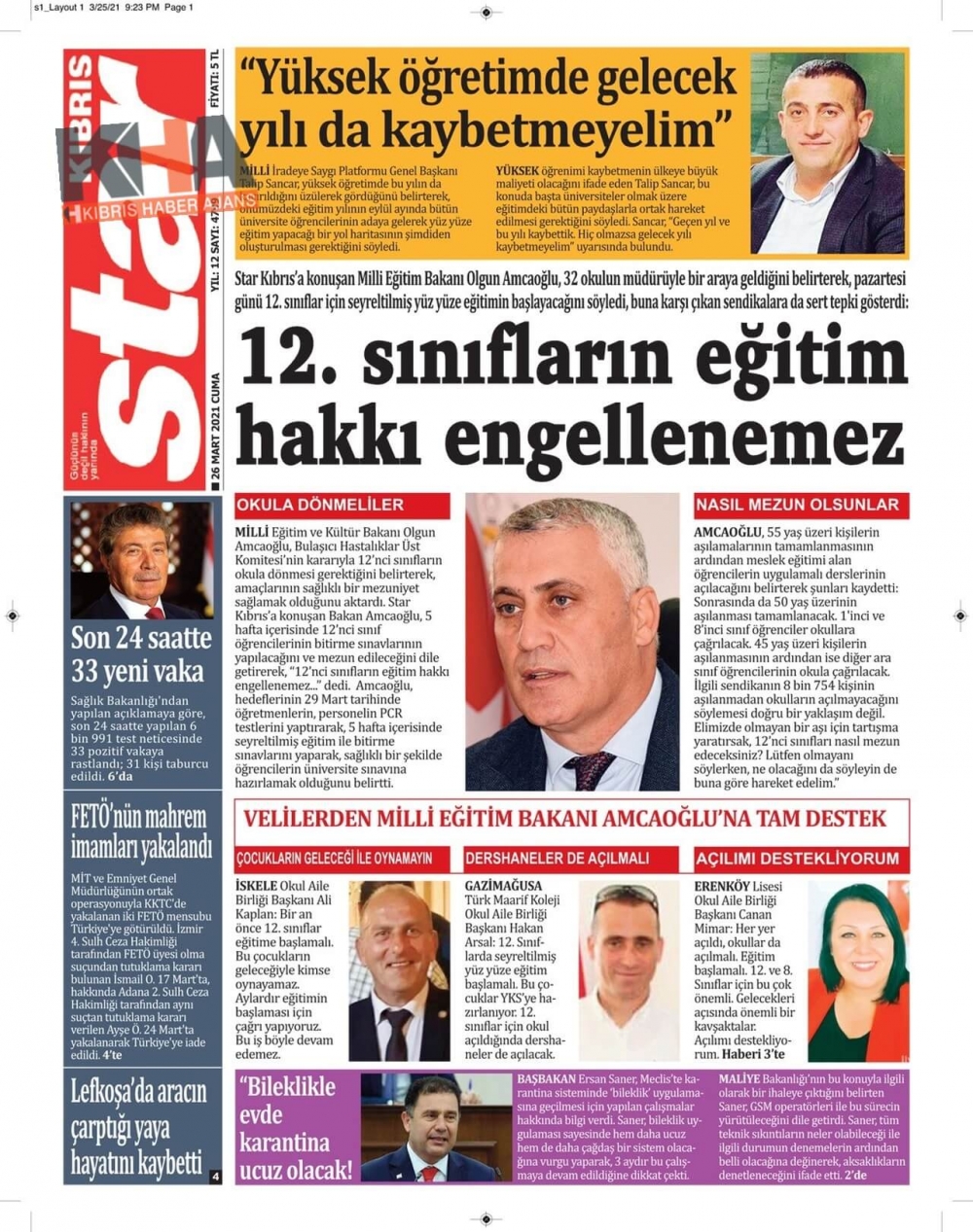 KKTC'de Gazeteler Bugün Ne Manşet Attı? (26 Mart 2021)
