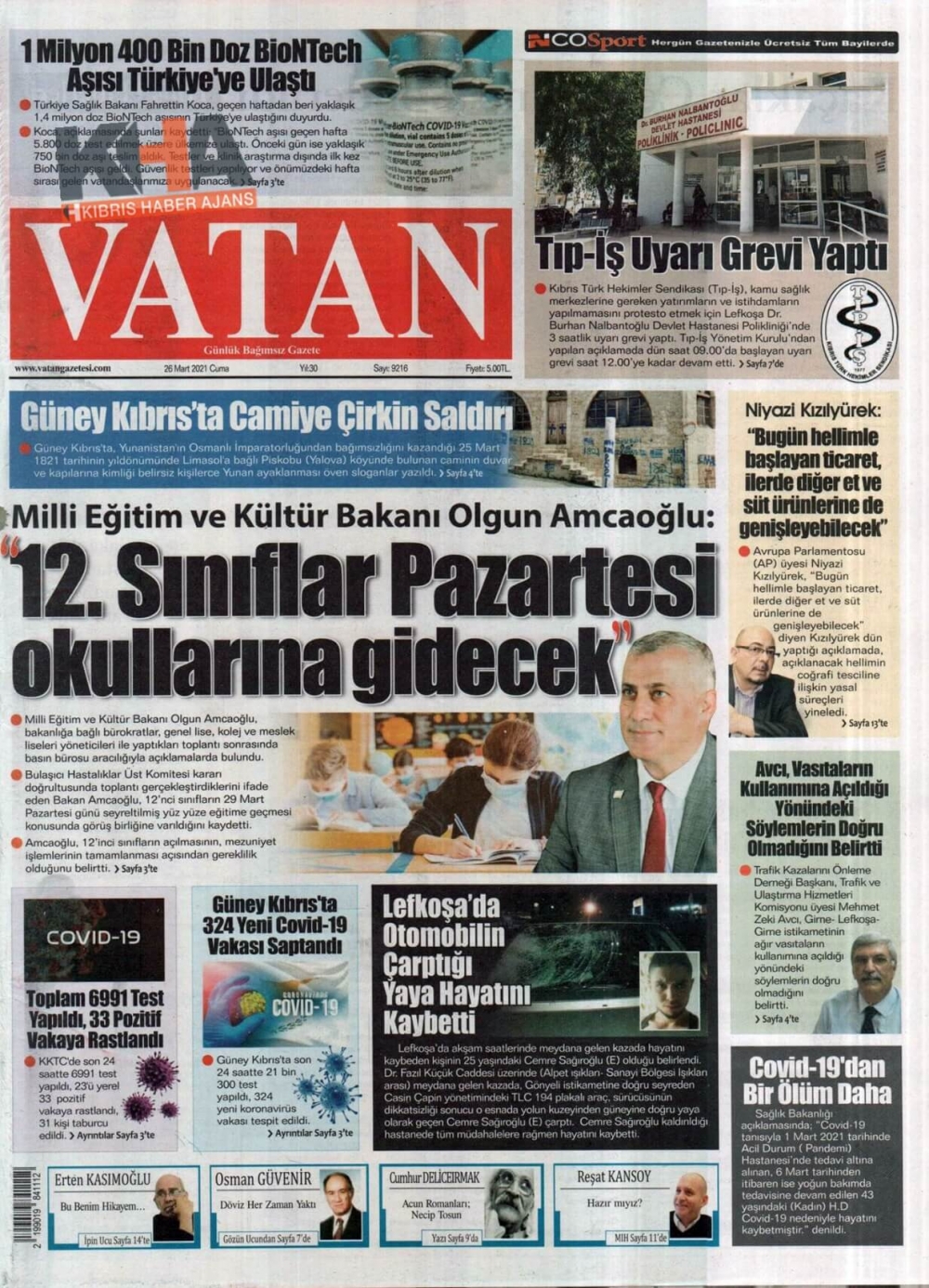 KKTC'de Gazeteler Bugün Ne Manşet Attı? (26 Mart 2021)