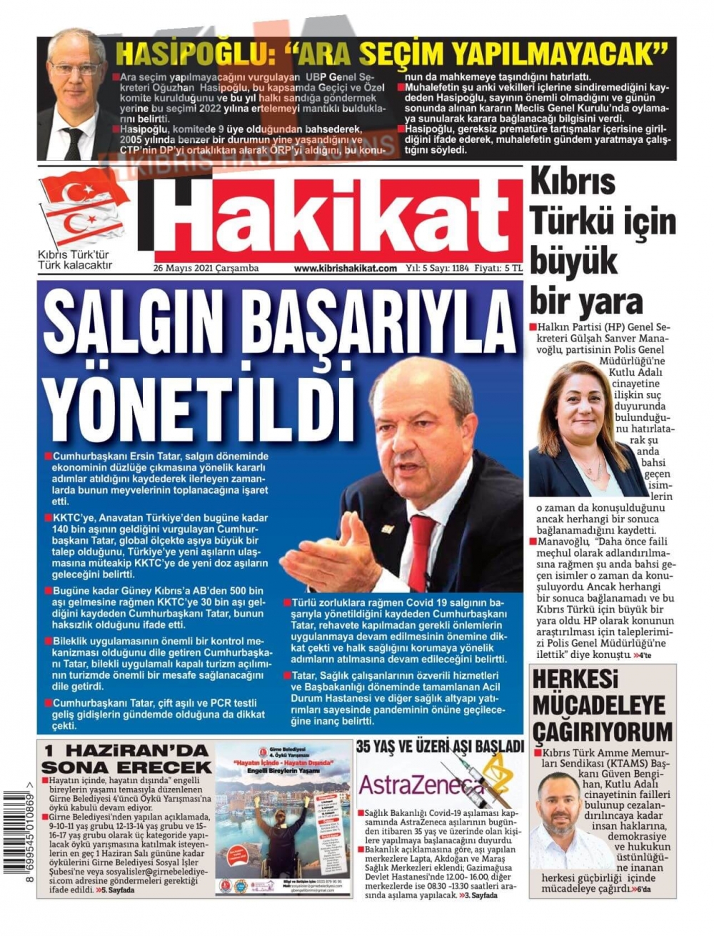 KKTC'de Gazeteler Bugün Ne Manşet Attı? (26 Mayıs 2021)
