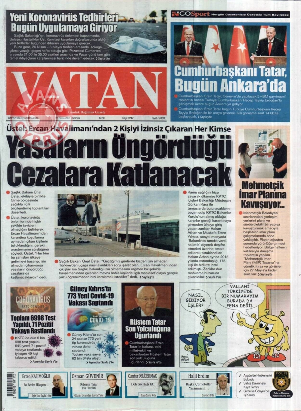 KKTC'de Gazeteler Bugün Ne Manşet Attı? (26 Nisan 2021)