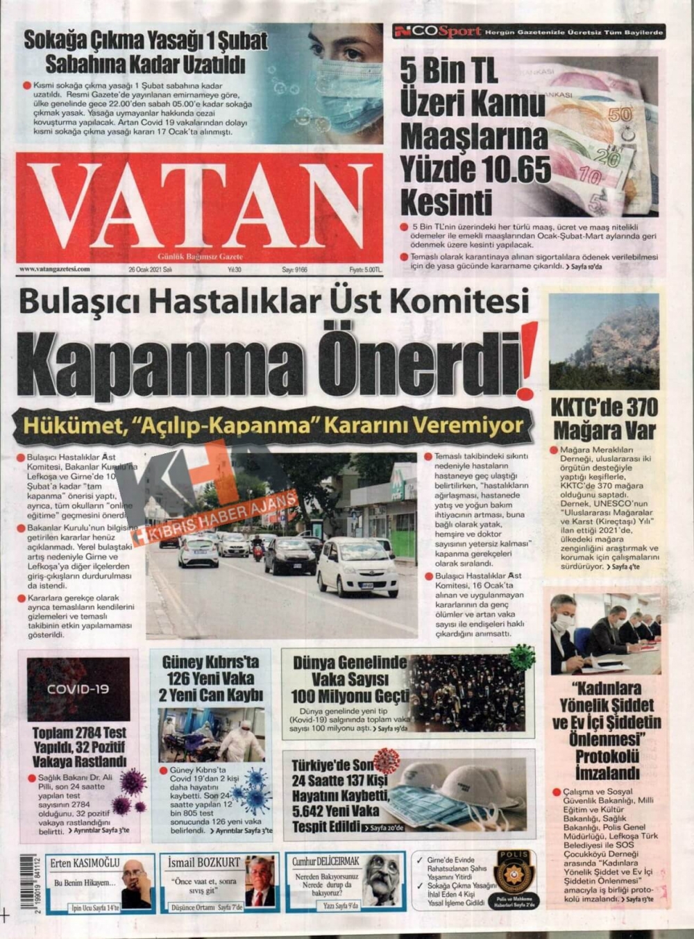 KKTC'de Gazeteler Bugün Ne Manşet Attı? (26 Ocak 2021)