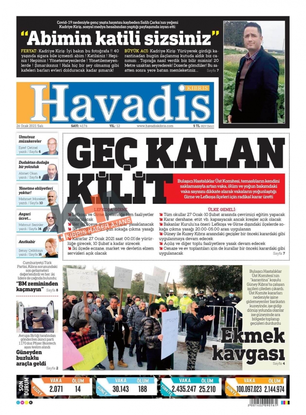 KKTC'de Gazeteler Bugün Ne Manşet Attı? (26 Ocak 2021)