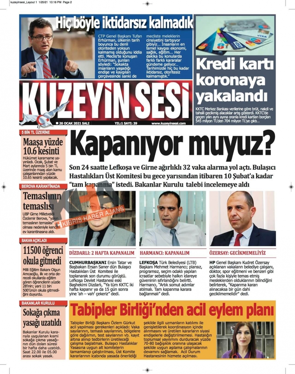 KKTC'de Gazeteler Bugün Ne Manşet Attı? (26 Ocak 2021)