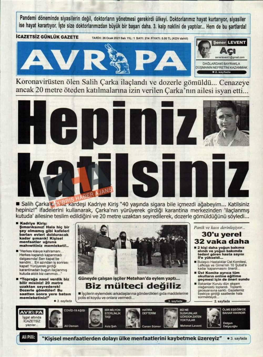 KKTC'de Gazeteler Bugün Ne Manşet Attı? (26 Ocak 2021)