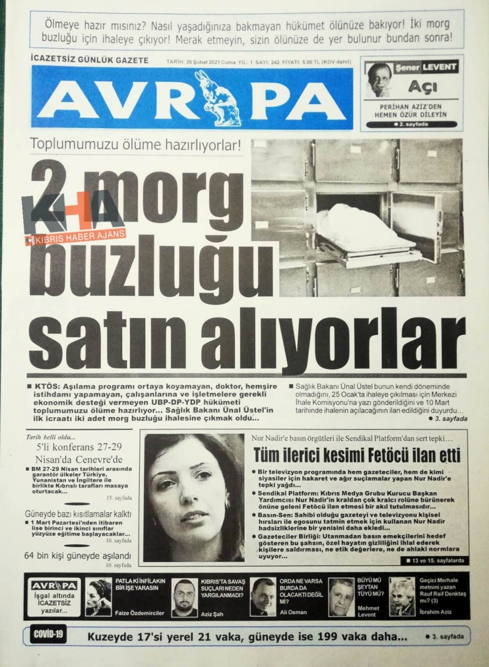 KKTC'de Gazeteler Bugün Ne Manşet Attı? (26 Şubat 2021)