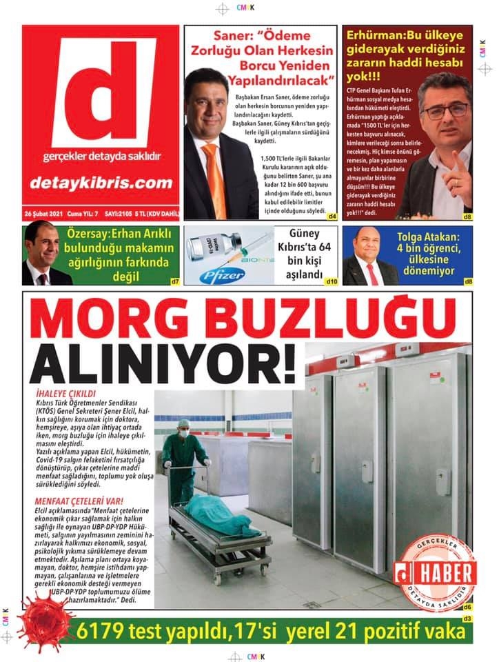 KKTC'de Gazeteler Bugün Ne Manşet Attı? (26 Şubat 2021)