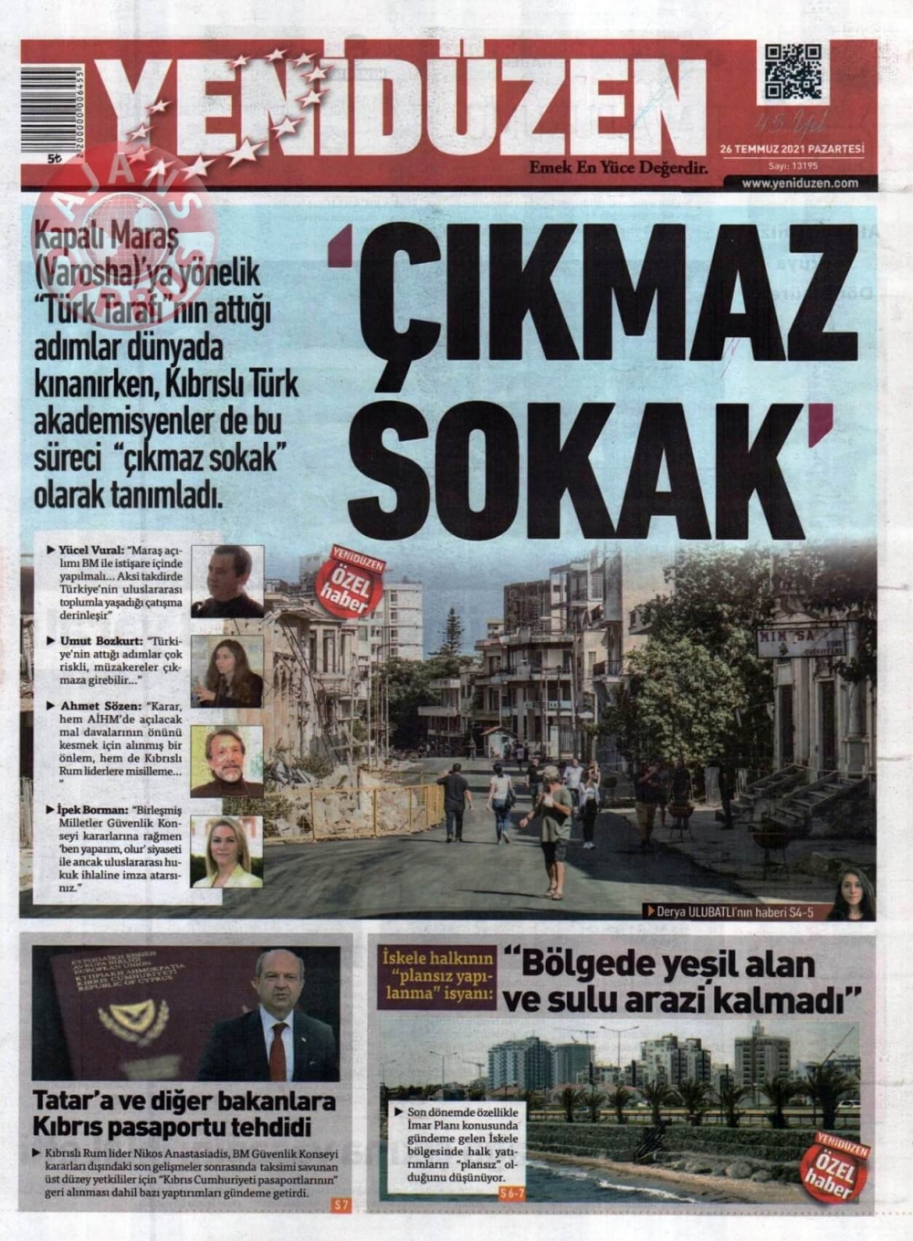 KKTC'de Gazeteler Bugün Ne Manşet Attı? (26 Temmuz 2021)
