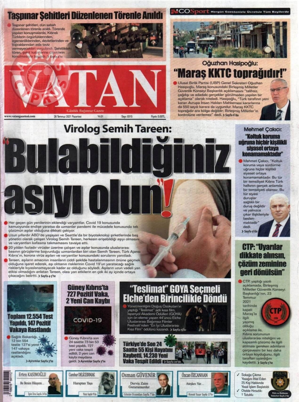 KKTC'de Gazeteler Bugün Ne Manşet Attı? (26 Temmuz 2021)