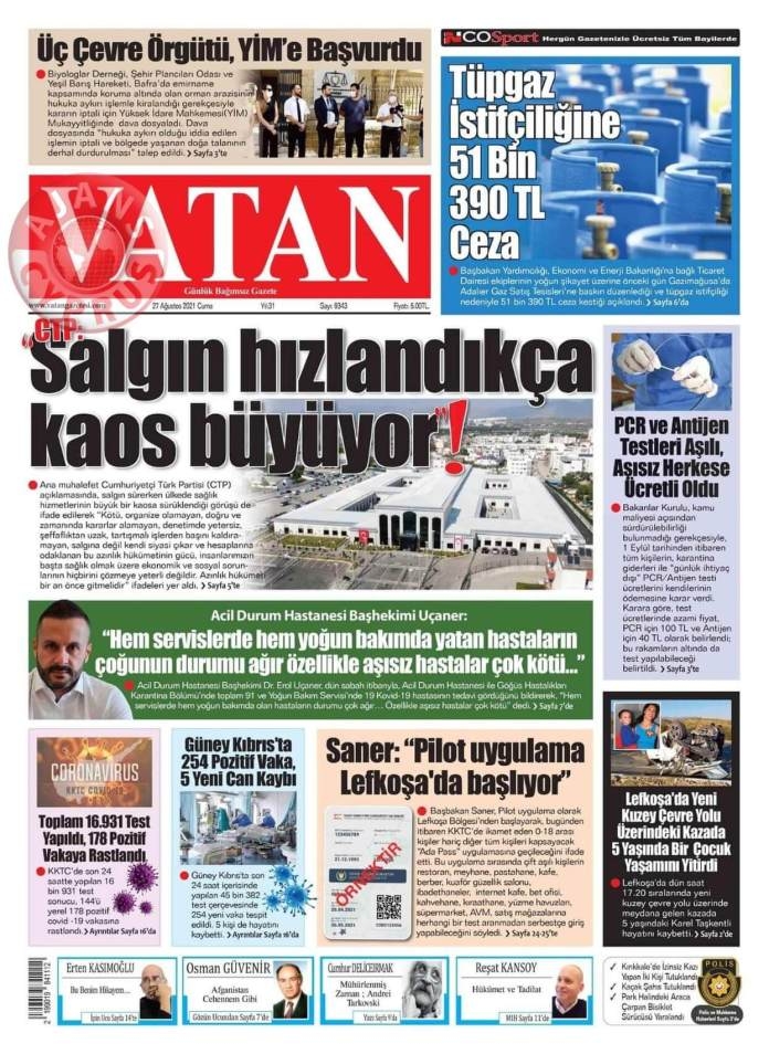 KKTC'de Gazeteler Bugün Ne Manşet Attı? (27 Ağustos 2021)
