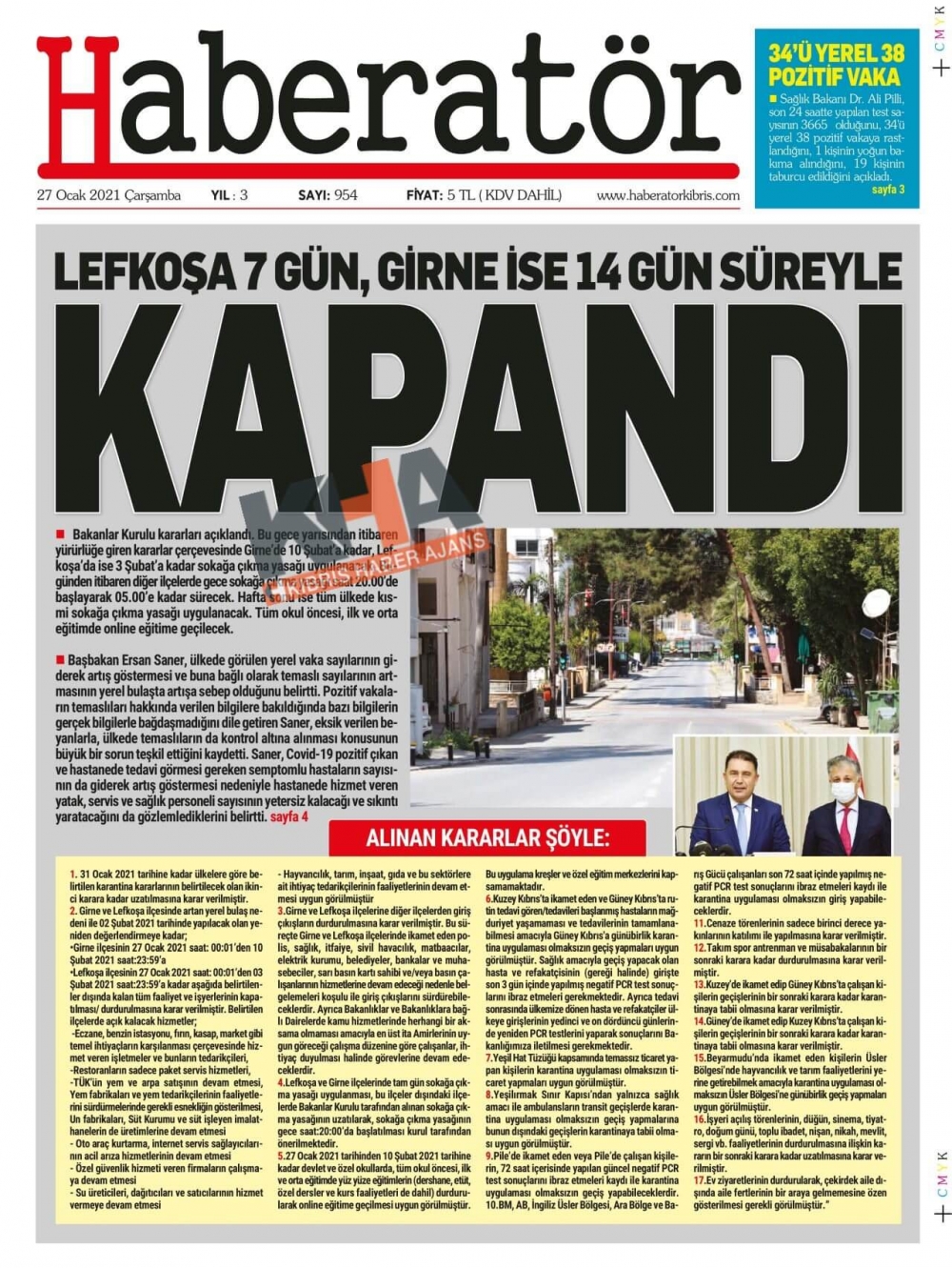 KKTC'de Gazeteler Bugün Ne Manşet Attı? (27 Ocak 2021)