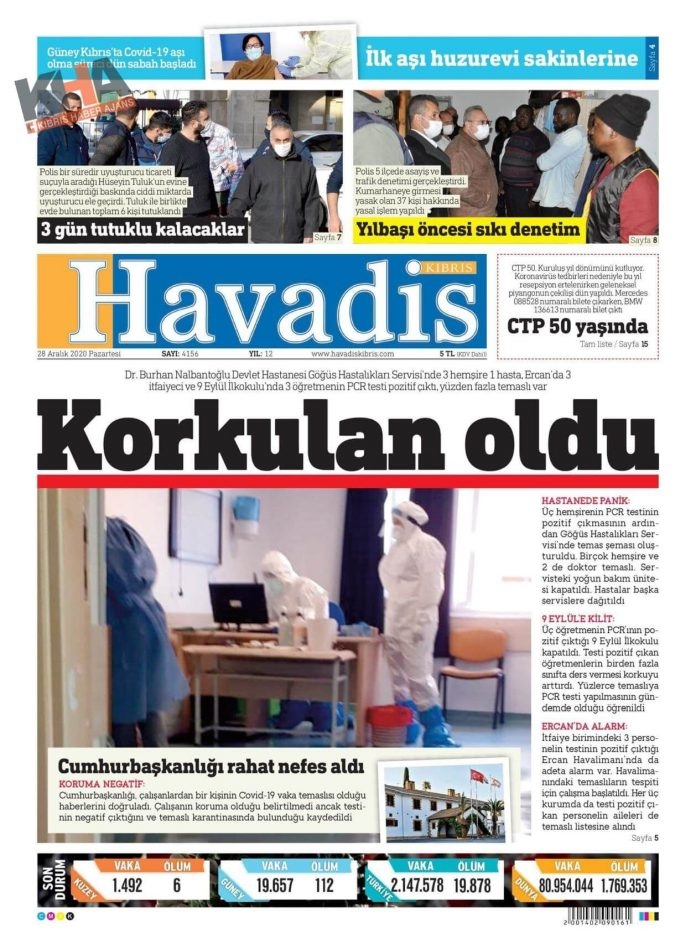 KKTC'de Gazeteler Bugün Ne Manşet Attı? ( 28 Aralık 2020 Pazartesi )