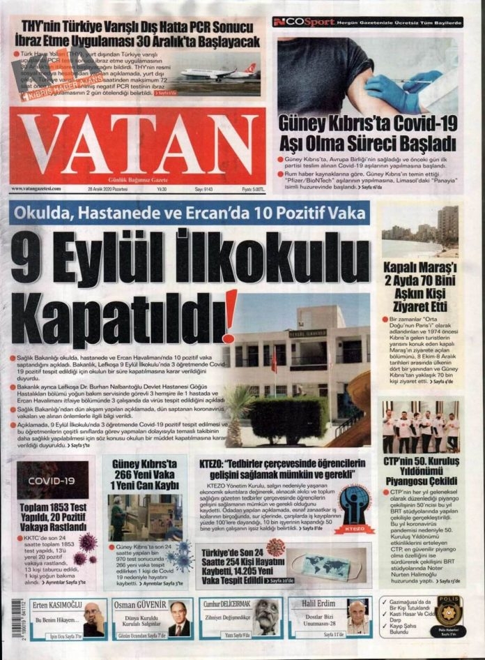 KKTC'de Gazeteler Bugün Ne Manşet Attı? ( 28 Aralık 2020 Pazartesi )