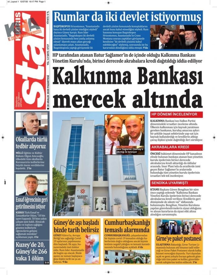 KKTC'de Gazeteler Bugün Ne Manşet Attı? ( 28 Aralık 2020 Pazartesi )