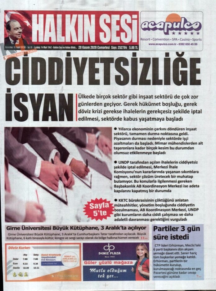 KKTC'de Gazeteler Bugün Ne Manşet Attı? ( 28 Kasım 2020 Cumartesi )