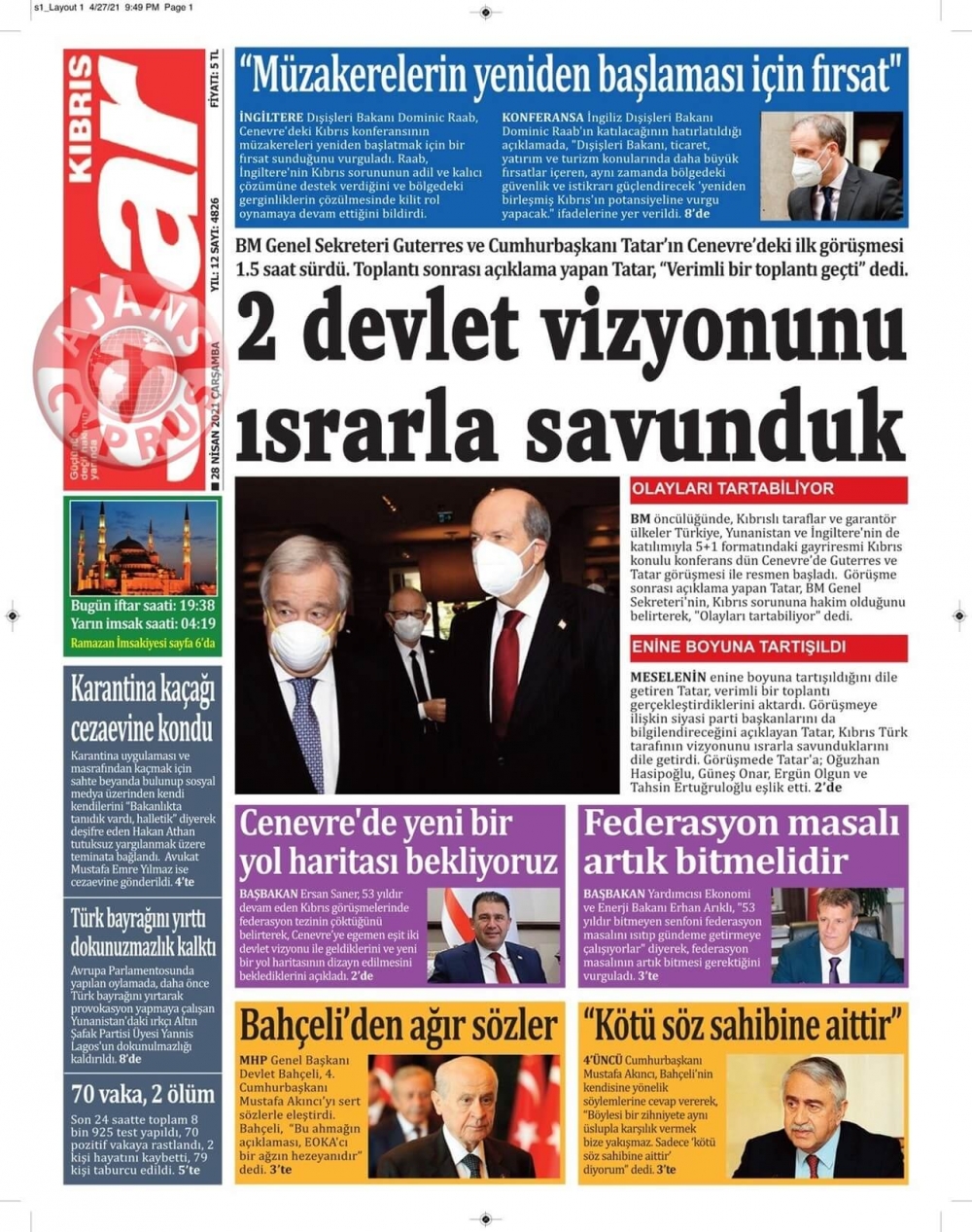 KKTC'de Gazeteler Bugün Ne Manşet Attı? (28 Nisan 2021)