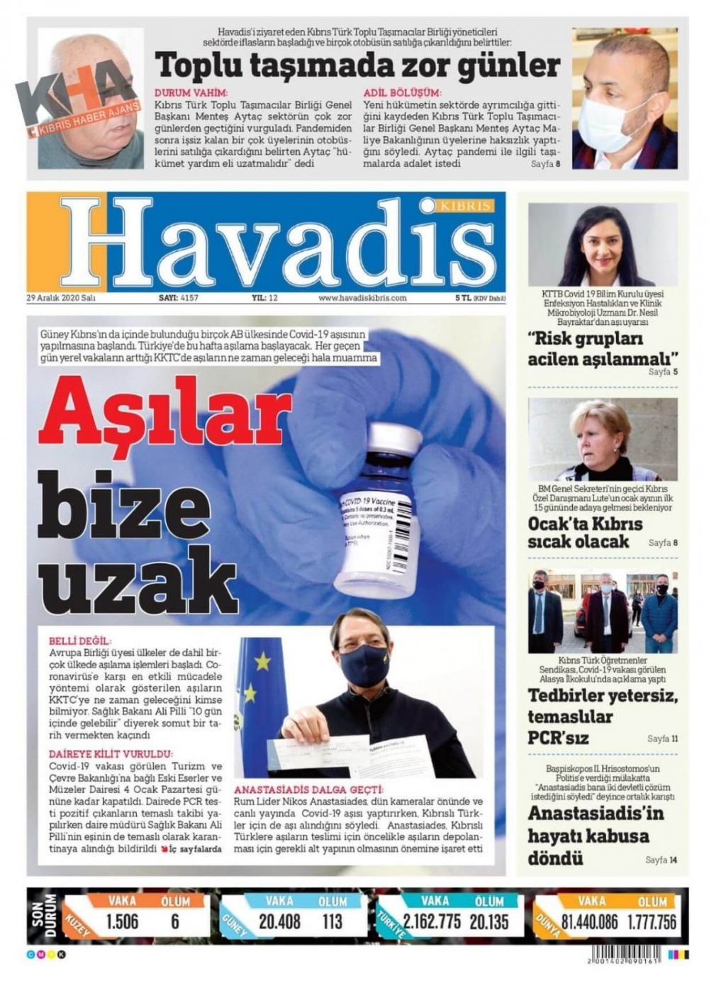 KKTC'de Gazeteler Bugün Ne Manşet Attı? ( 29 Aralık 2020 Salı )