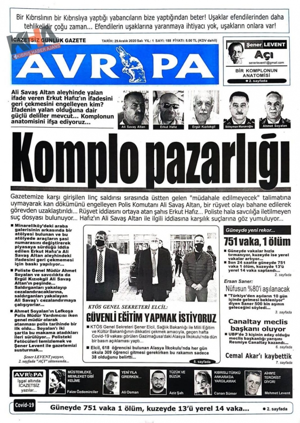 KKTC'de Gazeteler Bugün Ne Manşet Attı? ( 29 Aralık 2020 Salı )