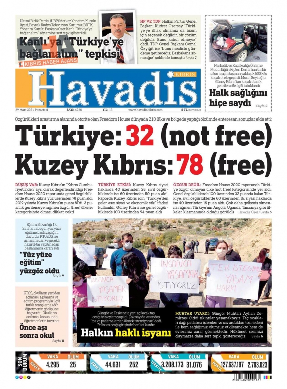 KKTC'de Gazeteler Bugün Ne Manşet Attı? (29 Mart 2021)