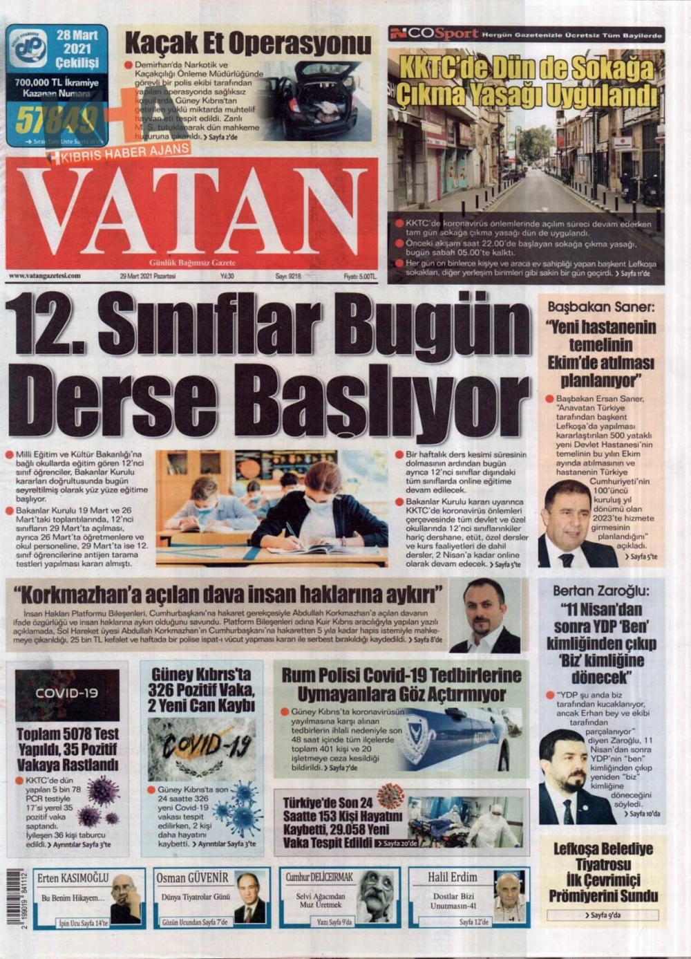 KKTC'de Gazeteler Bugün Ne Manşet Attı? (29 Mart 2021)