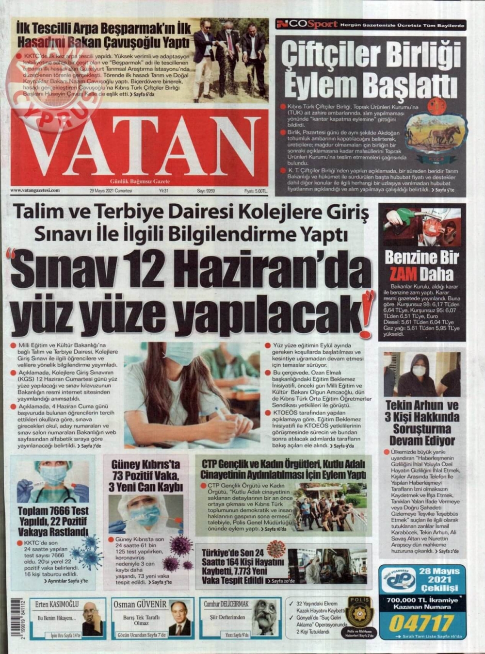 KKTC'de Gazeteler Bugün Ne Manşet Attı? (29 Mayıs 2021)