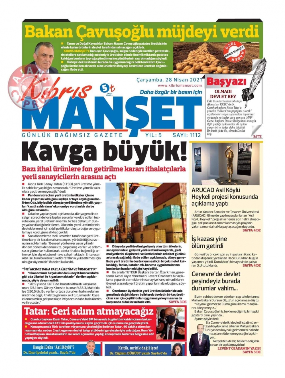 KKTC'de Gazeteler Bugün Ne Manşet Attı? (29 Nisan 2021)