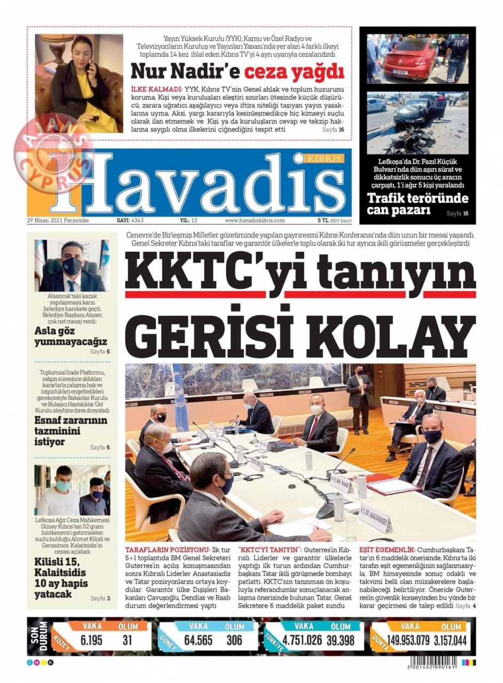KKTC'de Gazeteler Bugün Ne Manşet Attı? (29 Nisan 2021)