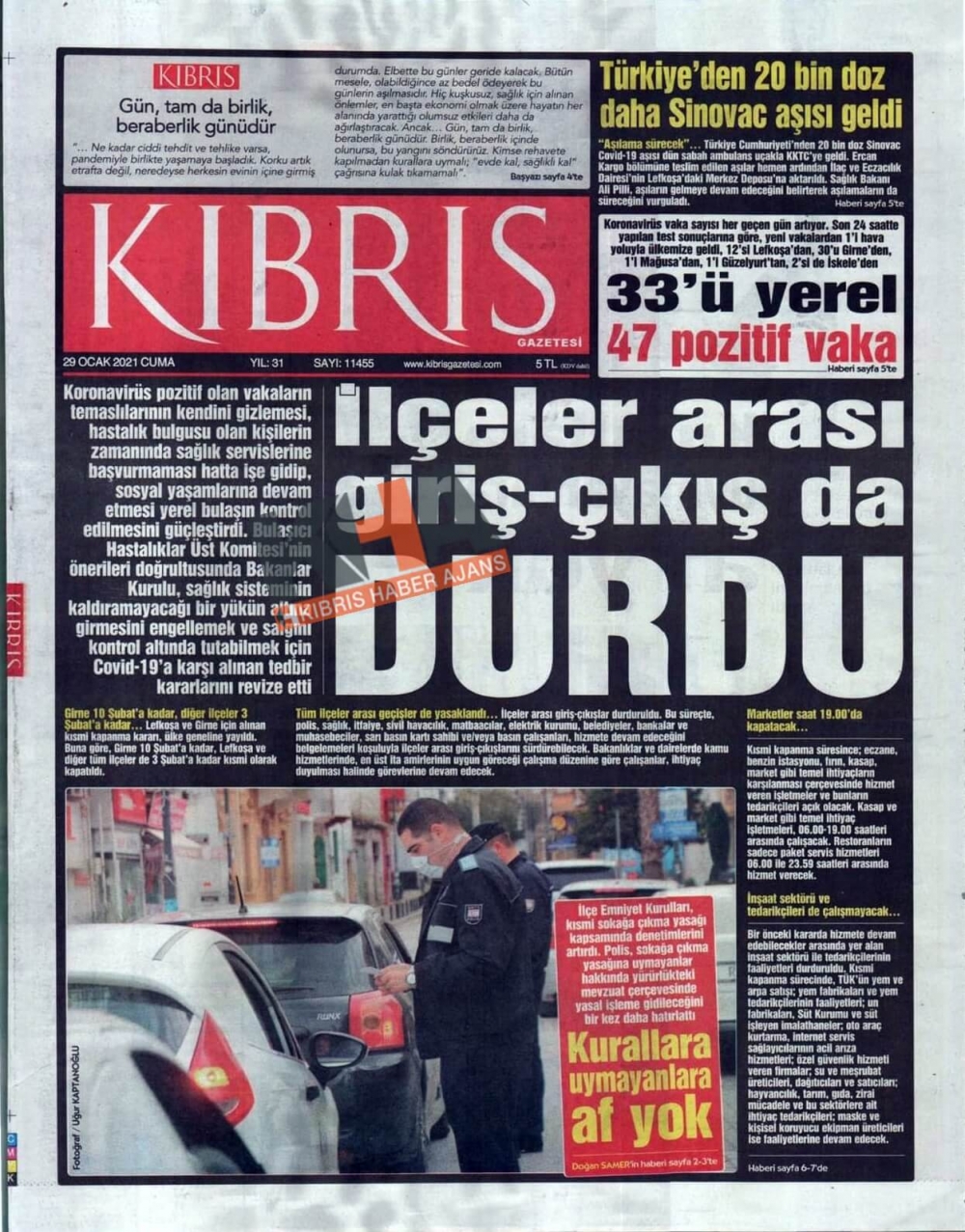 KKTC'de Gazeteler Bugün Ne Manşet Attı? (29 Ocak 2021)