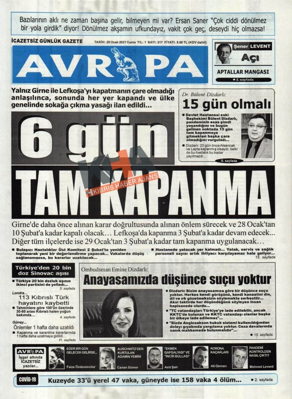 KKTC'de Gazeteler Bugün Ne Manşet Attı? (29 Ocak 2021)