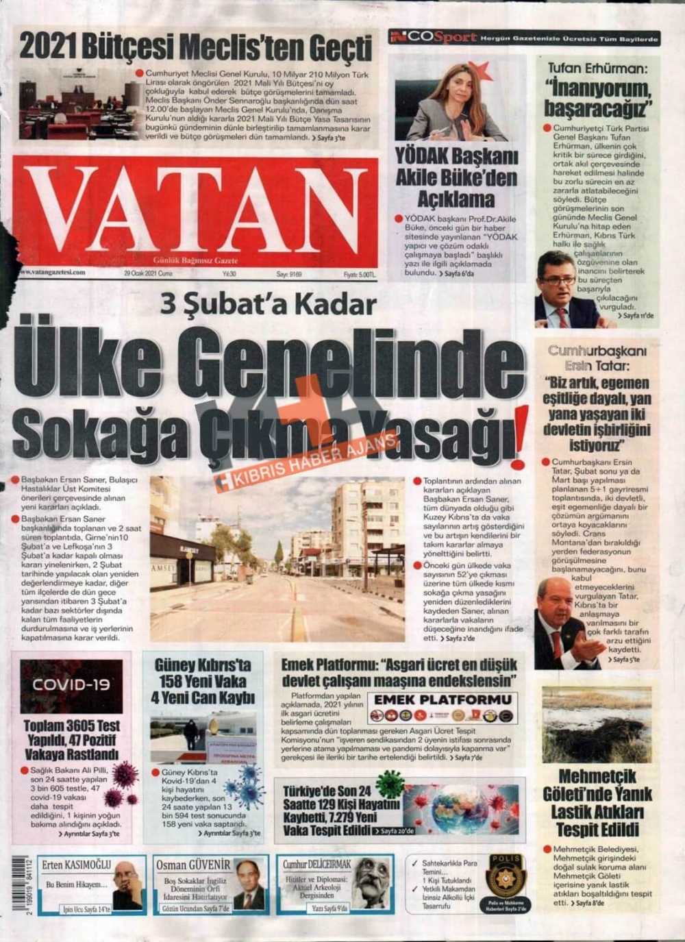 KKTC'de Gazeteler Bugün Ne Manşet Attı? (29 Ocak 2021)