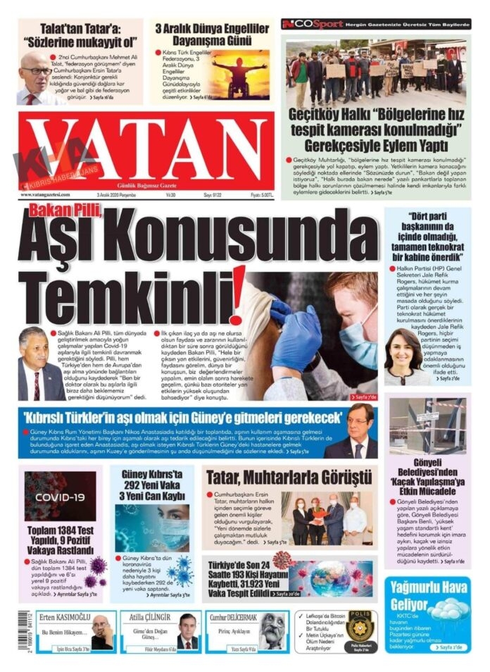 KKTC'de Gazeteler Bugün Ne Manşet Attı? ( 3 Aralık 2020 Perşembe )