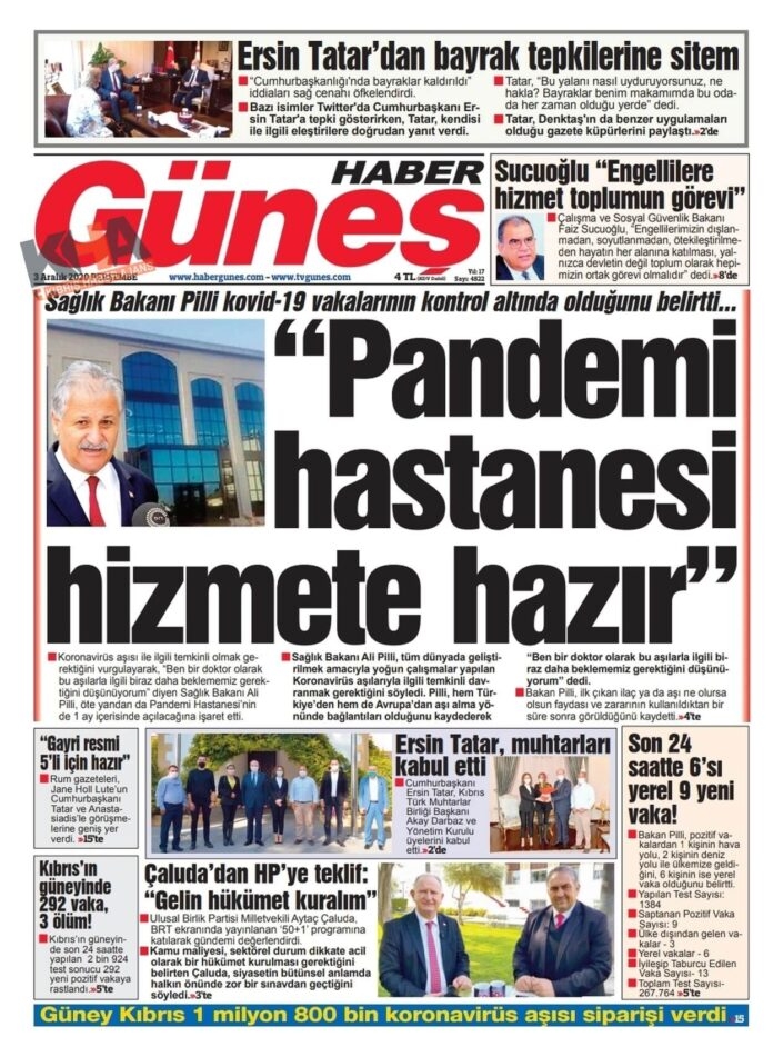 KKTC'de Gazeteler Bugün Ne Manşet Attı? ( 3 Aralık 2020 Perşembe )
