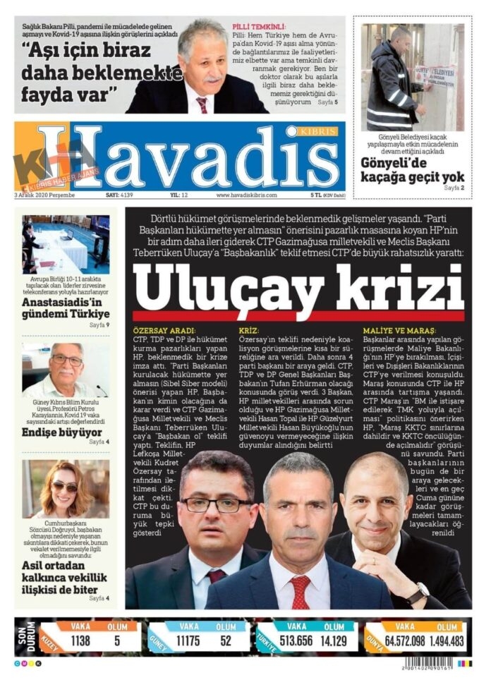 KKTC'de Gazeteler Bugün Ne Manşet Attı? ( 3 Aralık 2020 Perşembe )