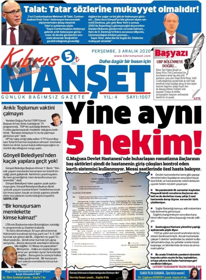 KKTC'de Gazeteler Bugün Ne Manşet Attı? ( 3 Aralık 2020 Perşembe )